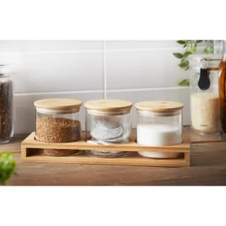 Store your kitchen essentials & ingredients inside this fabulous Natural Home Glass Jars in Bamboo Stand.