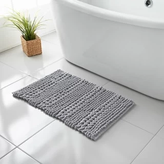 Enhance your bathroom decor with Retreat’s stunning knitted bath mat.